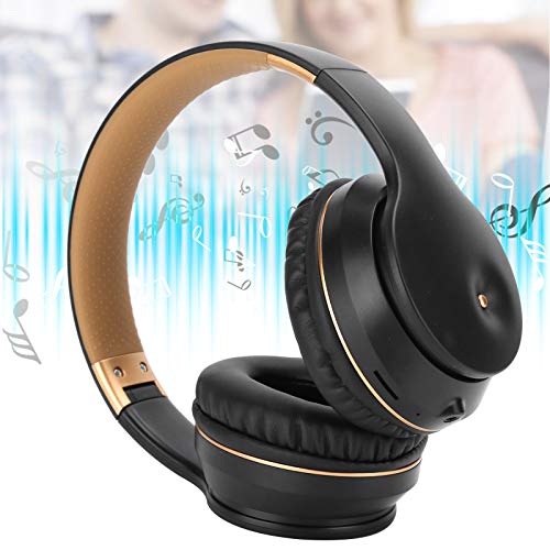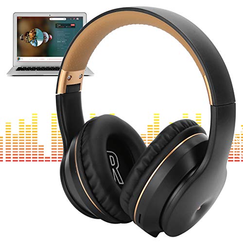 Specification: On-ear Koptelefoon,Draadloze Bluetooth Stereo Headset,Draadloze Pc-koptelefoon, Mp3 voor Muziekspellen Computers Ondersteunen Geheugenkaart, voor School/PC/Mobiel (Zwart goud)