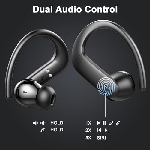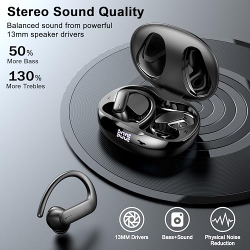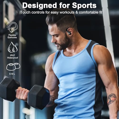 Draadloze Oortjes, yobola Wireless Earbuds Bluetooth 5.3 HiFi Stereo, ENC Ruisonderdrukkende HD Microfoon Oordopjes Draadloos, IPX7 Waterdichte Touch Control Bluetooth Earbuds met Oorhaken,40 Uur Accu