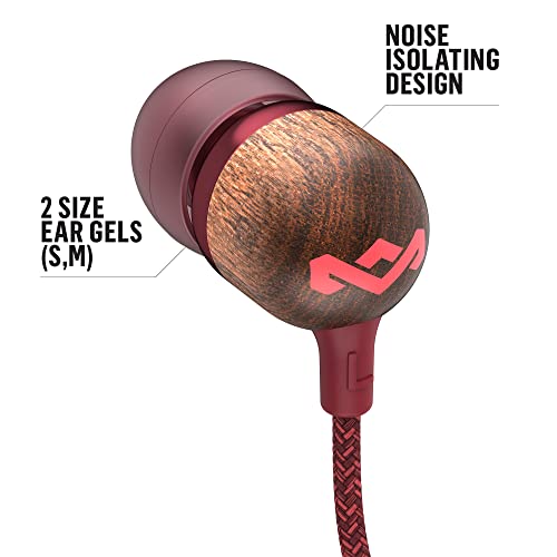 Specification: House of Marley Smile Jamaica in-ear hoofdtelefoon – duurzaam gemaakt, milieuvriendelijk, geluidsisolerende bedrade oortelefoon, 9,2 mm driver, tangle-vrije kabel, 1 knop microfoonbediening – rood