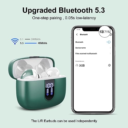 Specification: Lekaby Nieuwe Bluetooth Hoofdtelefoon, Draadloos Bluetooth 5.3 Oordopjes met ENC Mic Ruisonderdrukking, HiFi Stereogeluid, Lage Latentie, 48 uur Bluetooth Hoofdtelefoon voor Werk, Studie, Sport