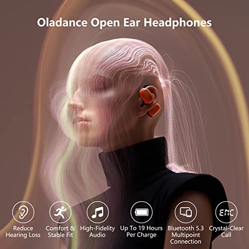 Oladance OWS2 Open Ear Hoofdtelefoon, Draadloze Hoofdtelefoon Bluetooth 5.3 met Multipoint Verbinding, Compatibel met Android en iPhone, Tot 19 uur Speeltijd met Draagtas, Martian Orange