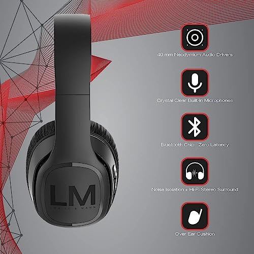 Specification: Louise & Mann Draadloze over-ear hoofdtelefoon, over-ear, opvouwbare bekabelde en draadloze headset met microfoon, enorme speeltijd, zachte oorkussens en draagtas voor mobiele telefoon, pc, tv