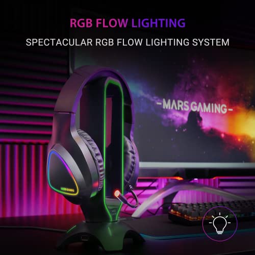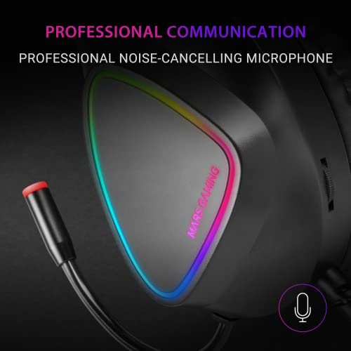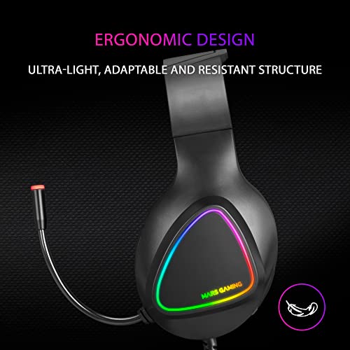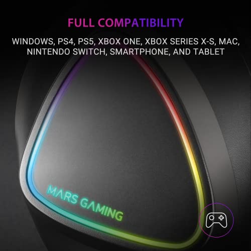 MARSGAMING Mars Gaming MH222 Gaming hoofdtelefoon RGB Over Ear met microfoon, HiFi-geluid, geluidsinterface, ultralicht, PS4 PS5 Xbox Switch Tablet Windows Mac, Zwart