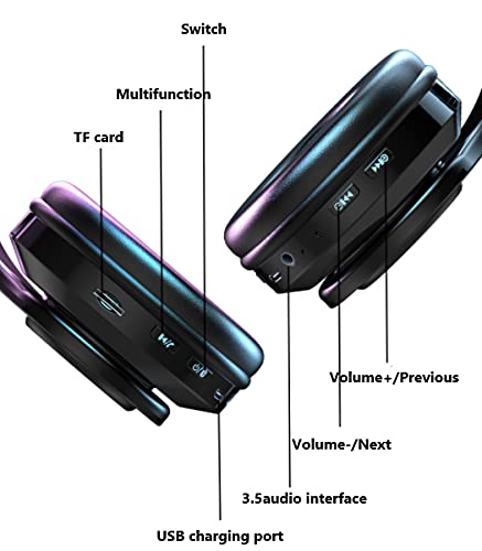 Hifi stereo: de opvouwbare, draadloze headset biedt een uitstekende geluidskwaliteit, diepe bassen, een nauwkeurigere basweergave en een diepere uitbreiding van het frequentiebereik. 7 kleuren verlichting geven je een coole look.