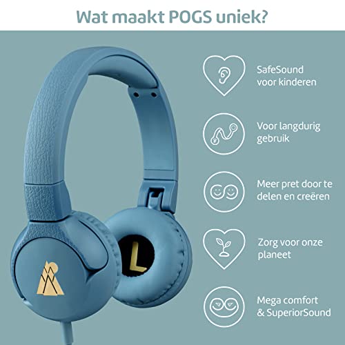 POGS bedrade koptelefoon kind | The Elephant | Opvouwbare on-ear-kinder koptelefoon v.a 3 jaar | Volumeregeling, microfoon, volumebegrenzing tot 85 dB | Muziek delen functie (blauw)
